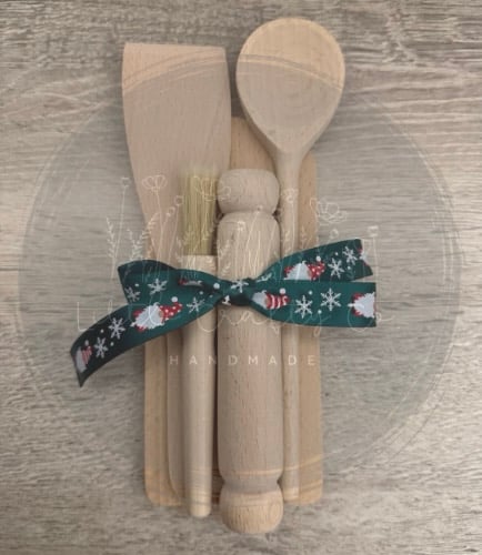 Spark your little one’s love for baking with this adorable mini wooden baking set! Perfectly sized for small hands, this charming bundle includes a wooden spoon, spatula, rolling pin, pastry brush, and mini chopping board, all tied together with a festive gnome-themed ribbon for an extra touch of Christmas magic ✨