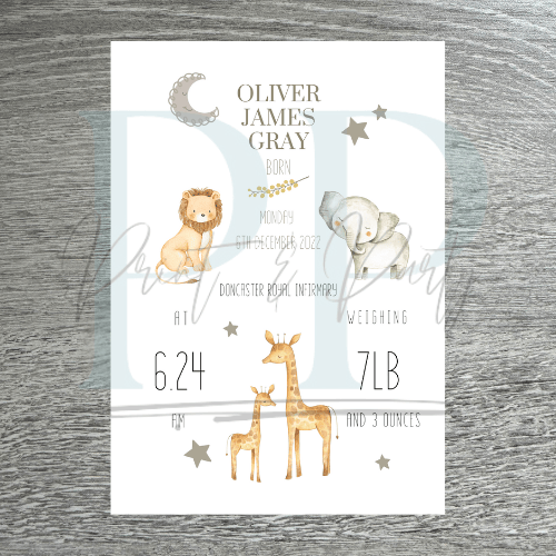 Once ordered - Please leave the following information in the 'add comment' section at checkout! Childs name (first and middle names), Date Of Birth, Time Of Birth, Birth Weight, Preferred Colour Theme.